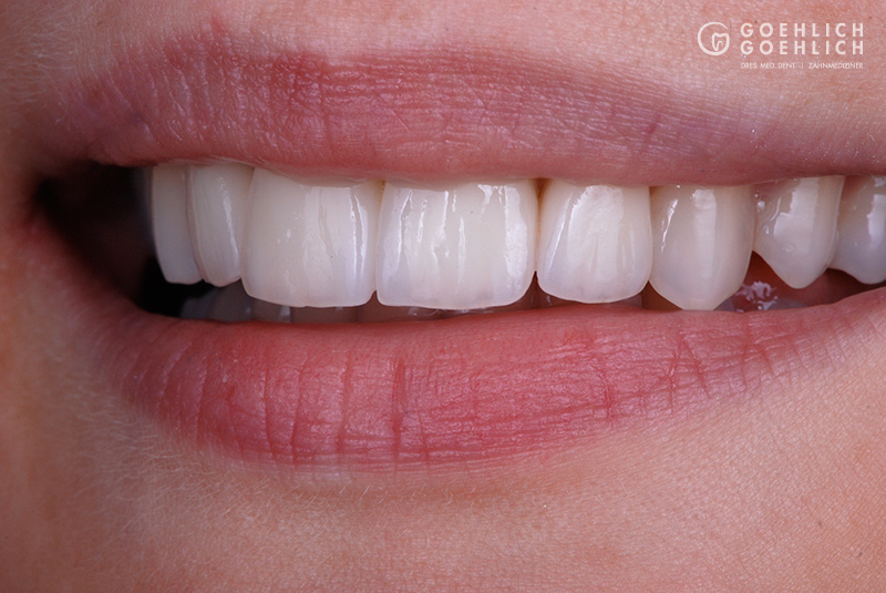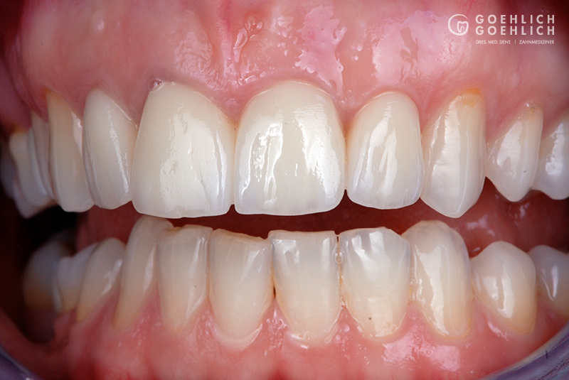 Zwei vollkeramische Frontzahnkronen (mittlere Schneidezähne) und